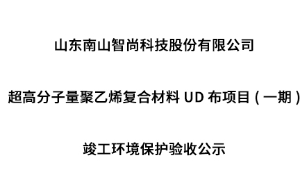 據《國務院關于修改建設項目竣工環境保護管理條例的決定》(國務院令第682號),以及環保部《關于發布建設項目竣工環境保護驗收暫行辦法的公告》(國環規環評[2017]4號),現將《山東南山智尚科技股份有限公司超高分子量聚乙烯復合材料UD布項目(一期)竣工驗收報告表》公示如下: